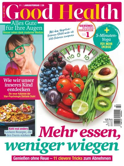 Good Health ist das erste Gesund-Bleibe-Magazin, in dem Gesundheitsbewusstsein und Lebensfreude miteinander verbunden werden. Entdecken Sie die perfekte Mischung aus Gesundheit, Lebensfreude und Genuss für sich – und zwar im Abo!