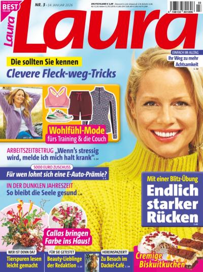 Laura zeigt Ihnen im Abo jede Woche die Trends aus Mode und Beauty – für jeden einfach umsetzbar. Laura ist die Zeitschrift für Frauen, die aktiv sind und ihren Alltag organisieren müssen.