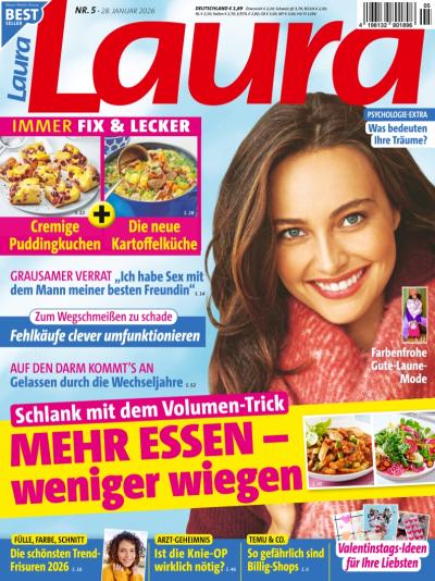 Laura zeigt Ihnen im Abo jede Woche die Trends aus Mode und Beauty – für jeden einfach umsetzbar. Laura ist die Zeitschrift für Frauen, die aktiv sind und ihren Alltag organisieren müssen.